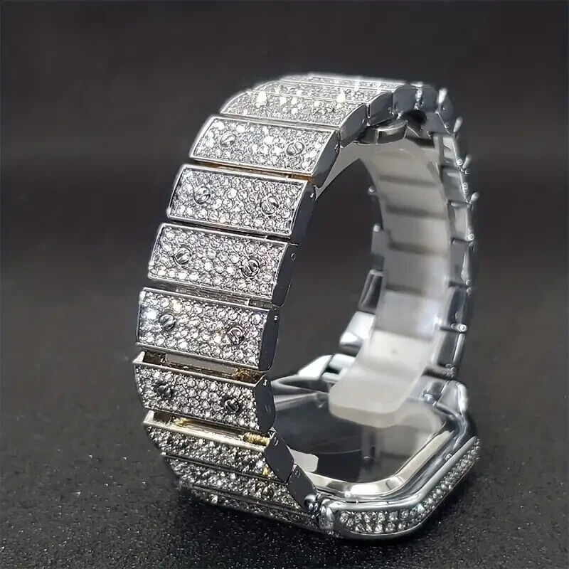 Have one to sell? Sell now Men's Watch Luxury Iced Silver Simulated Diamond Square Bracelet Metal Dress Icy