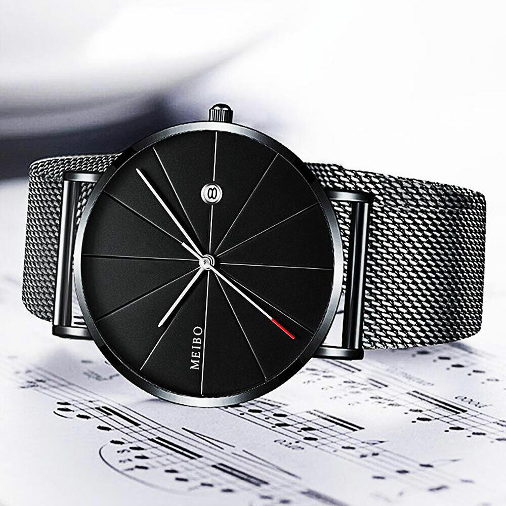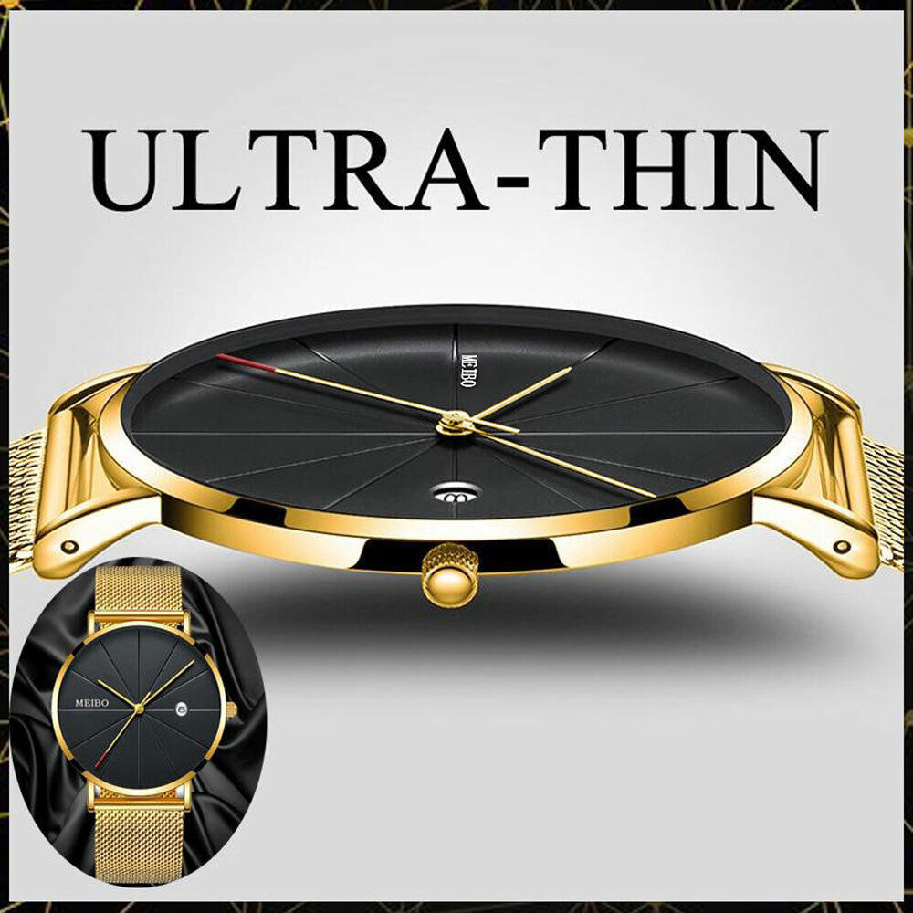 Military Mens Slim Stainless Steel Watch Fashion Casual Analog Date Wristwatches