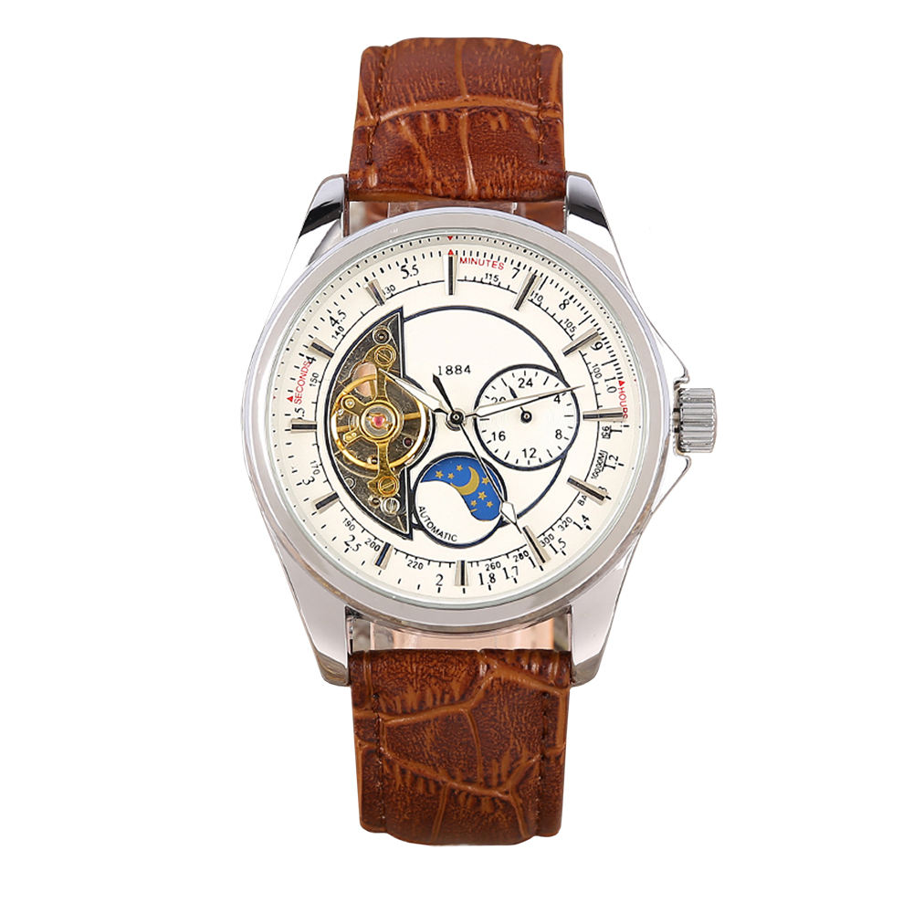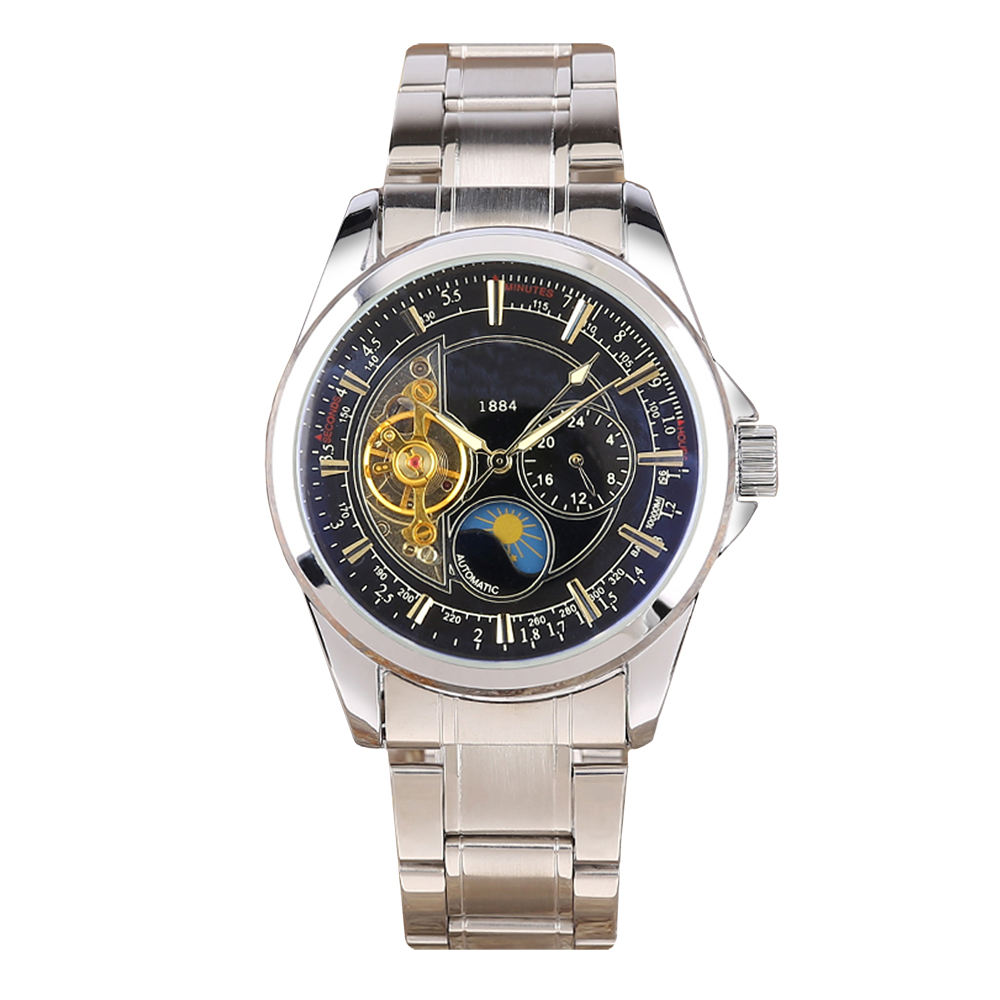 Automatic Mechanical stainless steel Watches Men Moon Phase function Watch